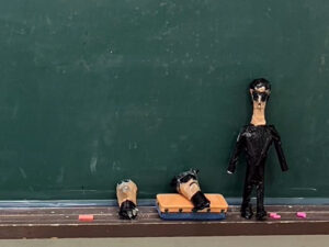 黒板に飾った工作員?は顔が差し替え式になっています。