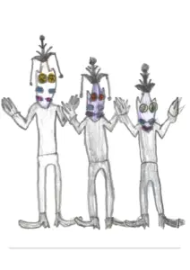 好んで描くのはエイリアンが圧倒的に多いです。名前やキャラ設定も自分で考えて作っています。たまに怪獣や乗り物、まれにネコなども描くことがあります。