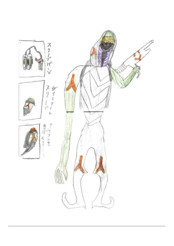 地球の科学者が生み出した3体目の人工生命体。ビルを超えるほどのジャンプ力があり、手から粘着弾を発射する。